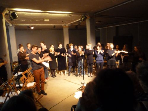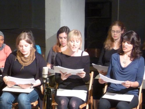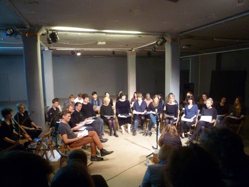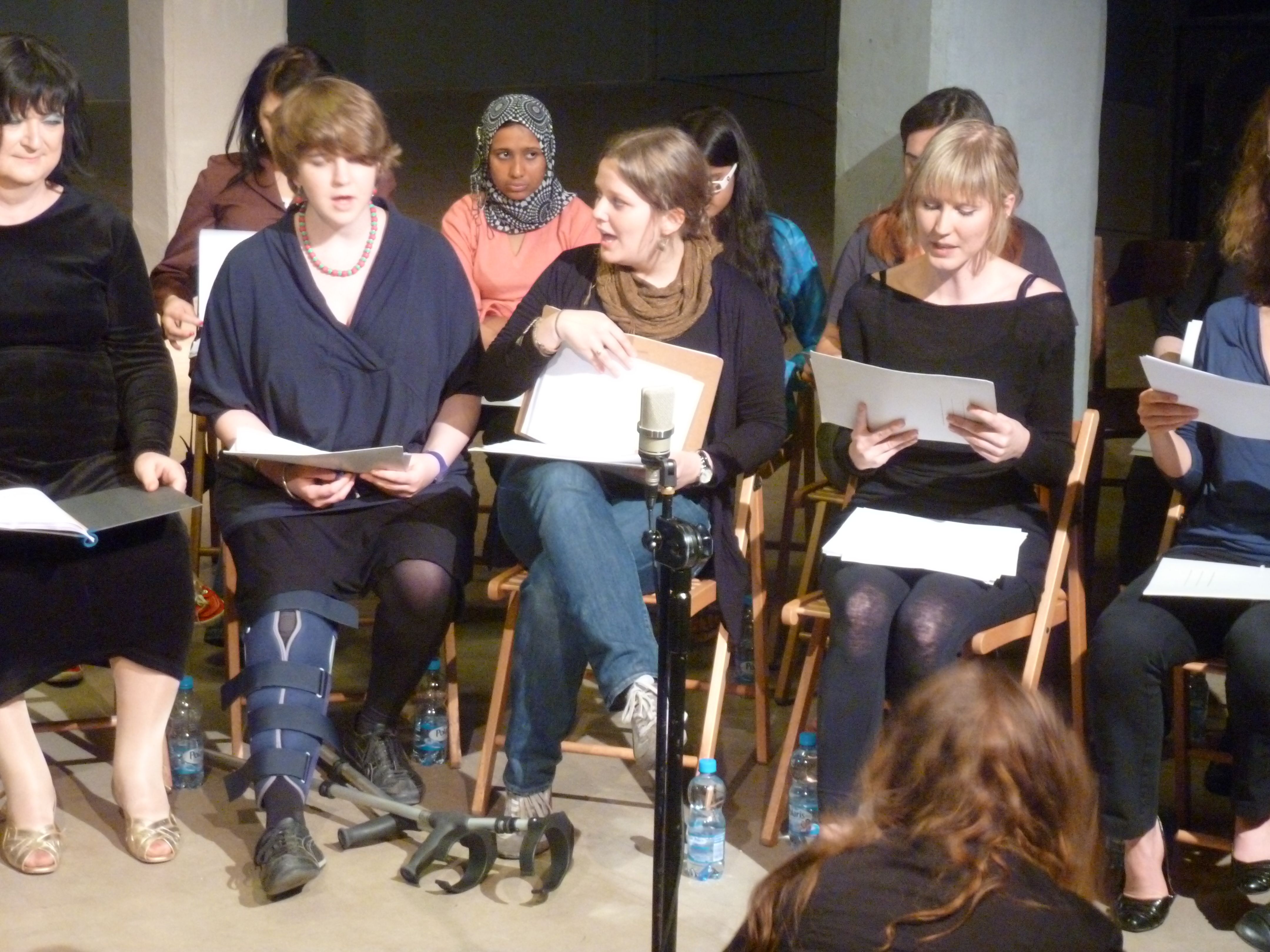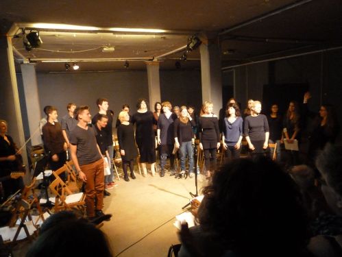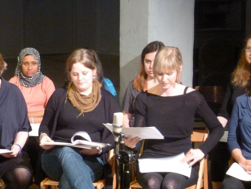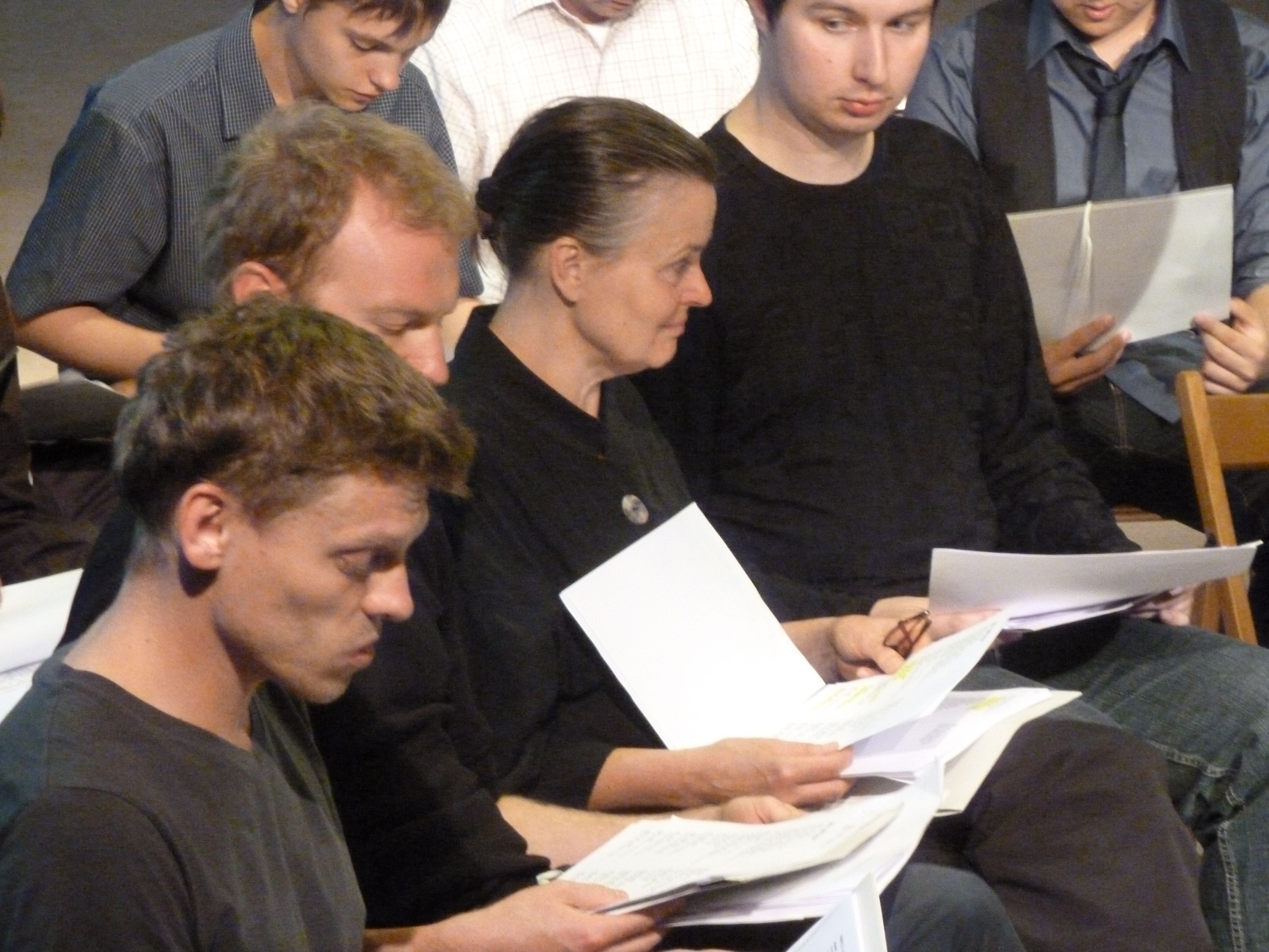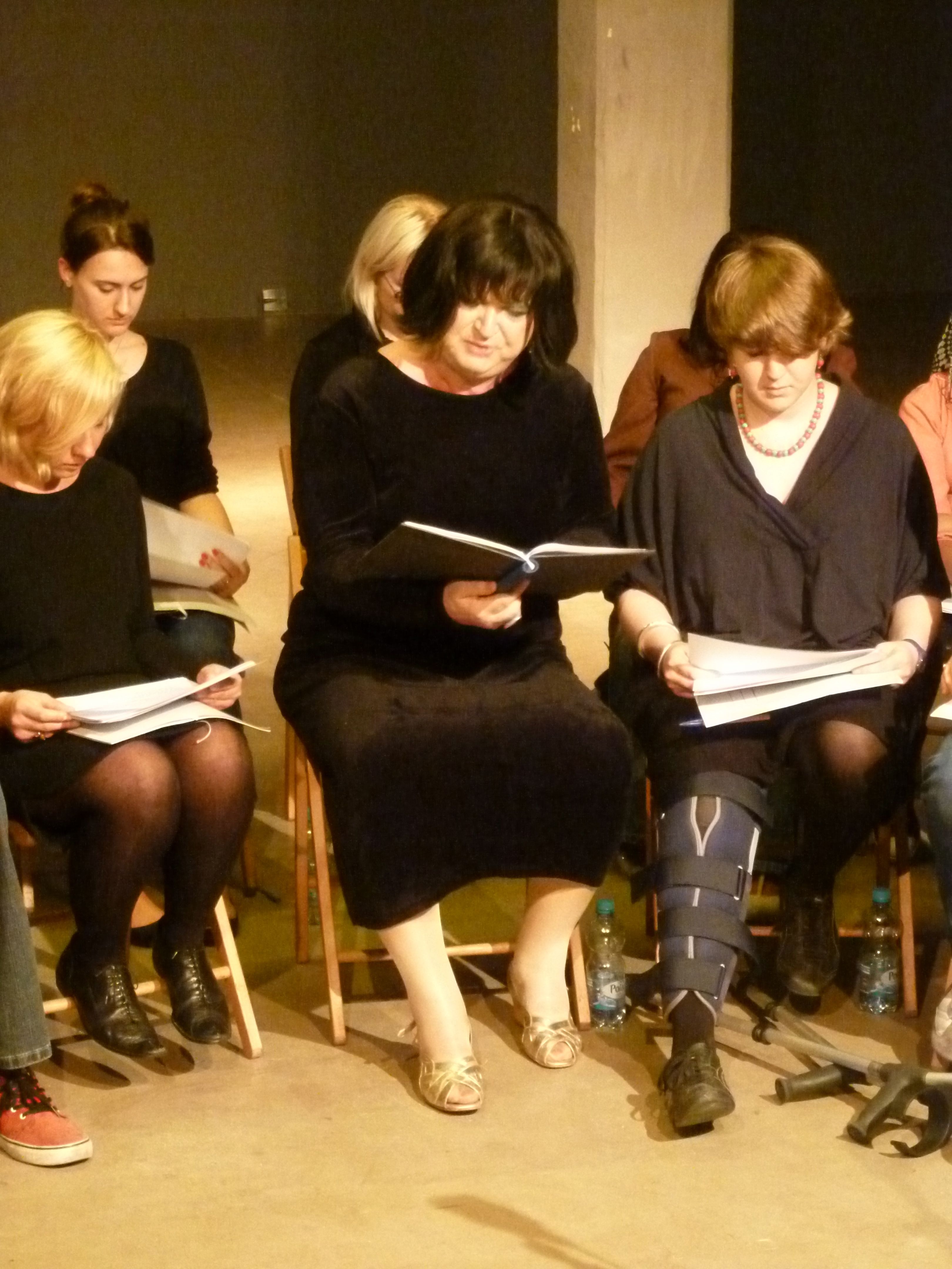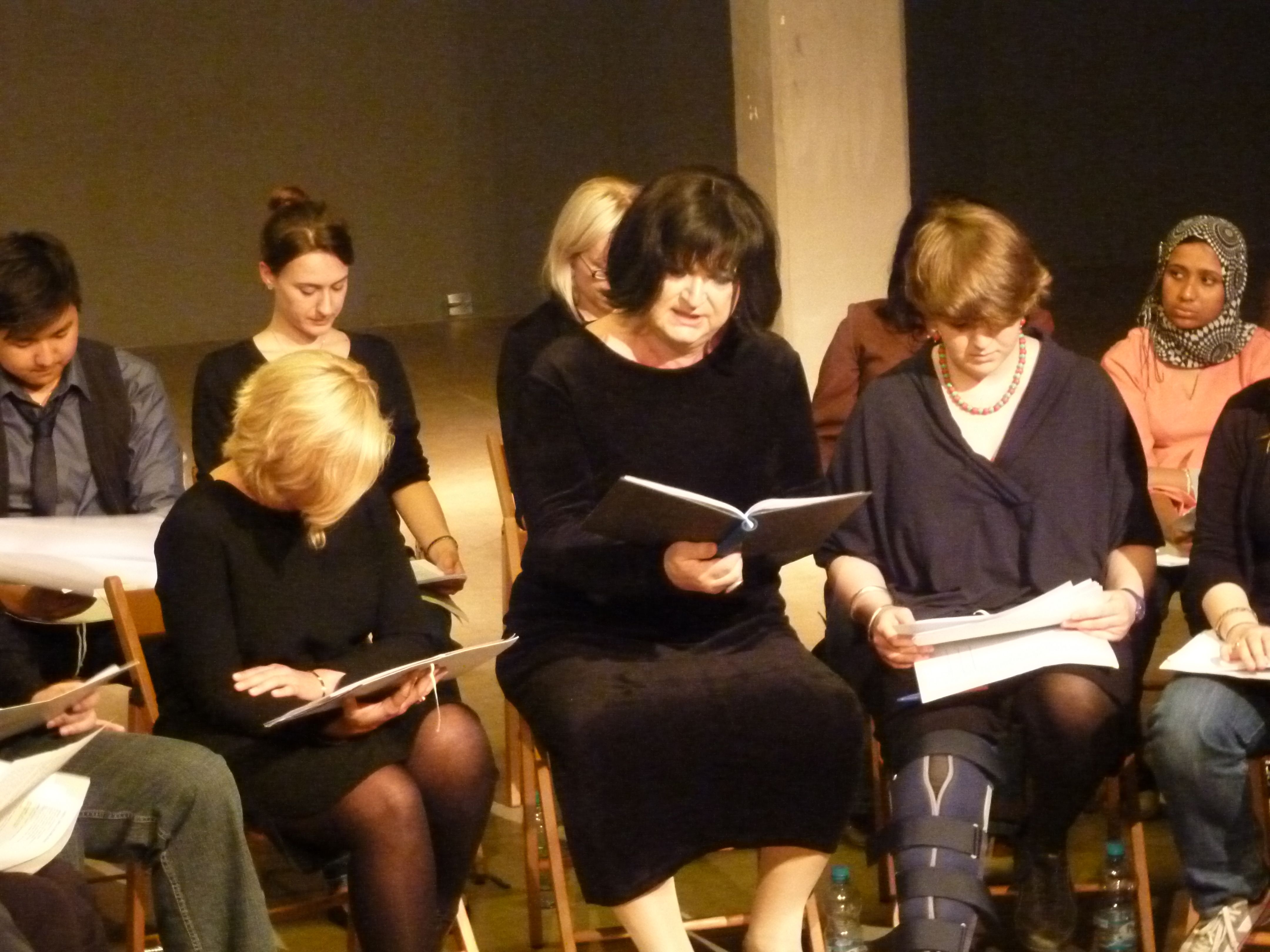 Last weekend, students from the American School in Kabaty and the University of Warsaw came together with adult actors from Berlin, Łódź, Warsaw, Wrocław, Minneapolis and Cambridge to present a Parallel Octave reading of UMRZEĆ W ATENACH//TO DIE IN ATHENS. The improvising chorus had over twenty people in it; there were also actors playing the roles of Medea, Oedipus, the Leaders of the Men’s and Women’s Choruses, Antigone (a chorus of two actresses), the Nurse, the Messenger, and the Singer.