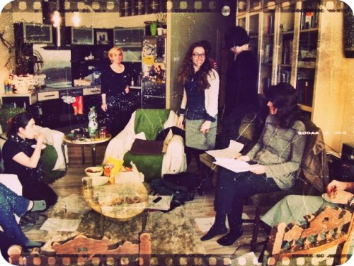 Photos of the intrepid Greater Warsaw Women’s Chorus, in rehearsal with Oedipus, Medea, and the Leader of the Women’s Chorus, for the first time. All pictures by Aneta Lukas, taken at her Bemowo apartment, on Saturday, June 2nd–the day before the reading